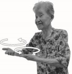 | 両手の手のひらを上に向け、左右が交差するように水平に円を描く |