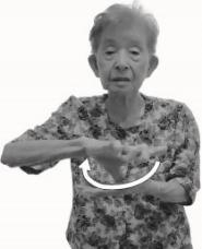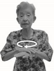 | 右手の手のひらで胸の前に円を描いた後、両手を握り、同時に下ろす |