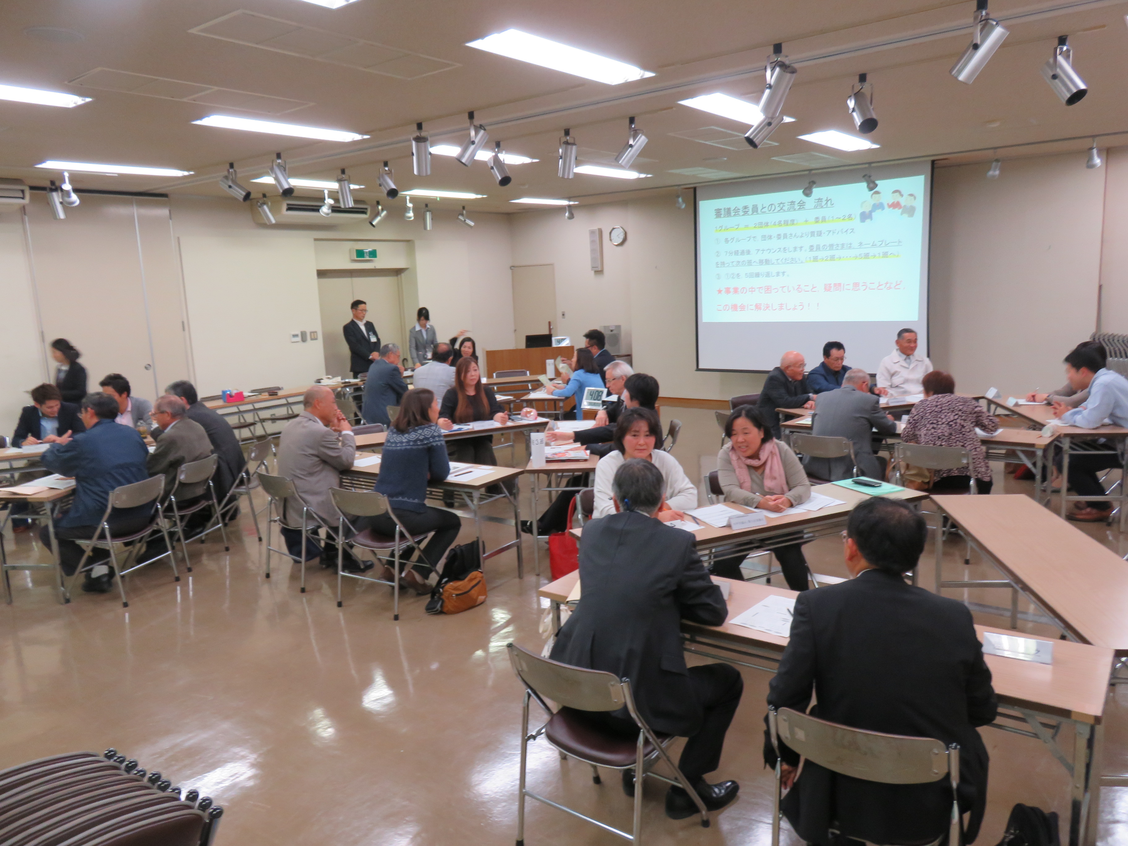 中間報告会終了後、今後の活動に向けて、団体さんと委員さんとで意見交換、アドバイス、事業の困りごと相談をするための交流会を行いました。