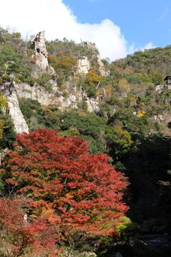 市内北部槙谷川の上流にあり中天にそびえ立つ330mの天柱山・剣峰など数知れない奇岩絶壁のいかつい岩石美と、 清流と紅葉の調和した渓谷が壮大な自然美をくりひろげる景勝の地です。