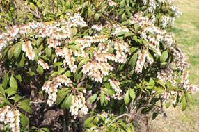 アセビはスズランに似た花を咲かせています。かなり地味なので気付かないお客さんが多いです。有毒植物である点はスズランと共通してますね。
