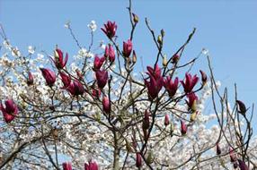 暗い紫紅色の花のため白いハクモクレンに対して、シ(紫)モクレンとも呼ばれるそうです。 ハクモクレンのほうが、とてもいい匂いがするので飼育員はハクモクレン派です。