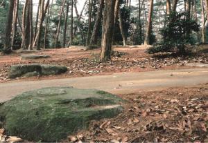 現在では、赤松林の中に残る建物の柱を支えた大きな礎石が、当時の栄華を物語るのみです。なお、寺域を取り巻く築地塀の一部も、部分的にみることができます。