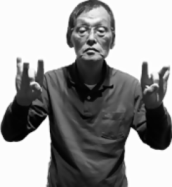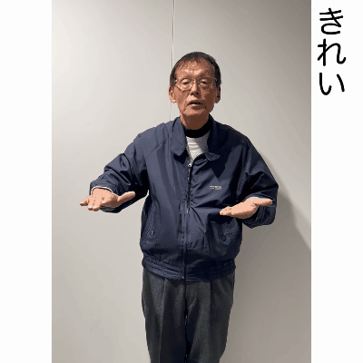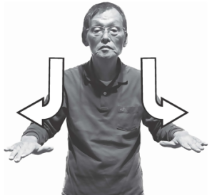 | 右手の手のひらで胸の前に円を描いた後、両手を握り、同時に下ろす | |