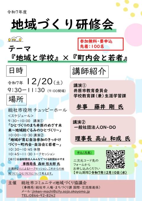 総社市コミュニティ地域づくり協議会の主催で地域づくり研修会を行います!