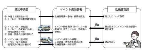 ・申請者は、使用開始日の2週間前までにイベント担当部署へトイレカー貸出要求書を提出してください