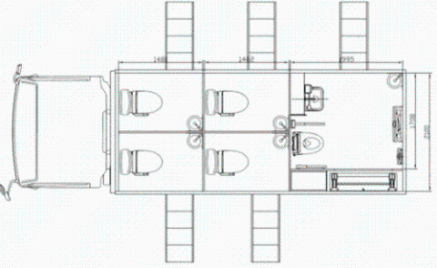 トラックの荷台部分にトイレを5室(普通トイレ室4、多機能トイレ室1)を備えています