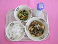牛乳 豚肉と里芋の甘辛味噌炒め おかか和え 豆乳ムース(小中のみ) |