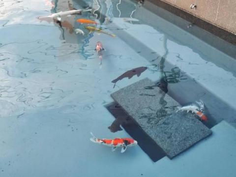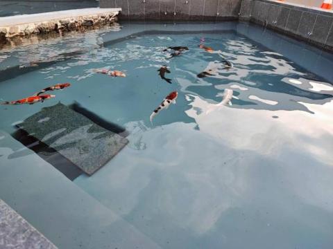 金色など、色とりどりの鯉たちが気持ちよさそうに泳いでいます。