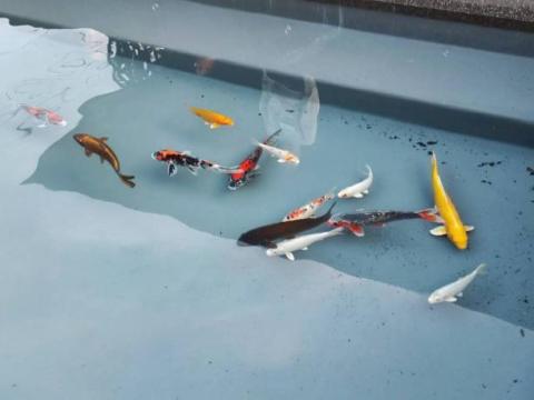 鯉たちが新しい池にお引っ越ししました!