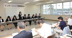 8月から9月にかけて市役所で受け入れたくらしき作陽大学のインターシップ生から市へ、1人1件、計9件の政策提言がありました。 この日、成果報告会が市役所で開かれ、市長や松田英毅学長、学生9人、市の幹部ら約30人が出席。学生は一人ずつ提言の趣旨や実施方法などをプレゼンテーションしました。 提出された提言は、「そうじゃ吉備路マラソンで特産品を活かしたスープの提供」、「学生のうちに消費生活における教育を受ける」、「大学生の長期インターンシップによる、誰もが行きたくなる学校づくりと品格教育の実現」など、多岐にわたるもの。 これらの提言は、市と大学で審査。新規性や独創性、実現可能性、将来性などの観点から優秀提言を選定し、表彰します。選ばれた提言は、実行に移す計画です。
