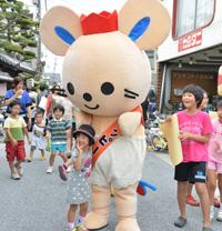 ゆるキャラグランプリ2013に、子育て王国そうじゃのキャラクター「チュッピー」がエントリー。この日、出陣式が市役所玄関前で行われ、チュッピーの必勝を祈願しました。 式では、総社保育所の園児21人が歌と踊りでチュッピーを応援。市長は「皆さん、チュッピーに投票を」と呼びかけました。