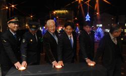 総社駅前のロータリーで、「SOJAキビナリエ2011 ~吉備路の自然~」(市と市観光協会主催)がスタートし、LED約1万5000個によるイルミネーションの輝きが行き交う人を楽しませています。 東側の駅前ロータリー内にある芝生などのスペース3か所を装飾。青やピンクを基調に、備中国分寺の五重塔と市の花のレンゲを表現しています。また、7つの円錐状のイルミネーションには、「平和」「愛」「希望」「夢」「祈り」「思いやり」「絆」の思いが込められています。 この日、総社駅前で点灯式が行われ、市長は「まちを盛り上げ、明るく前進する気持ちの象徴にしたい」とあいさつ。市長ら6人がスイッチを押すと、一斉に輝き始めました。 イルミネーションは昨年に続き3回目で、来年1月9日までの毎夜、午後5時から11時まで点灯。