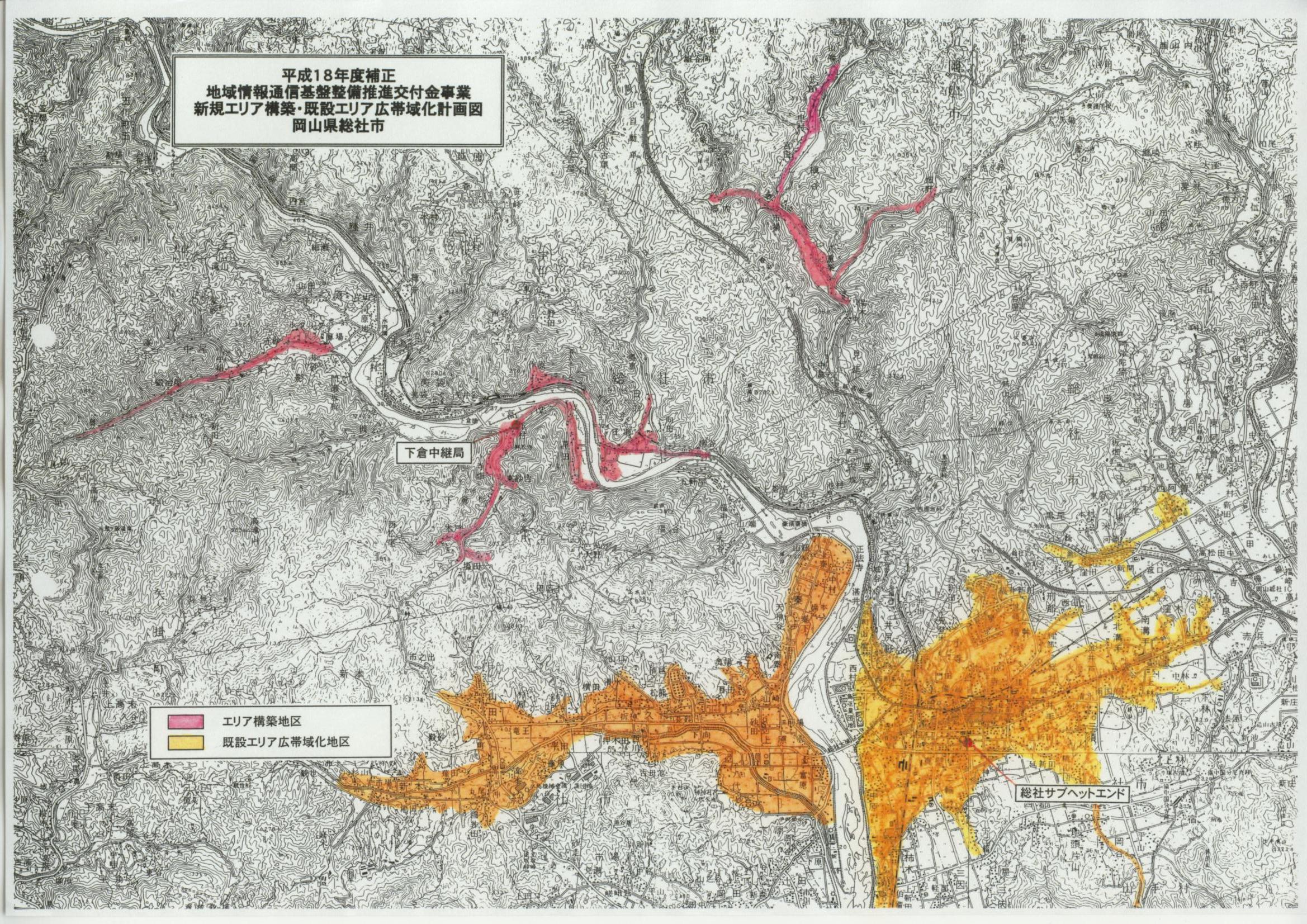 総社市では、地域間の情報格差是正のため、国の情報通信基盤整備推進交付金を活用しながら、第3セクターである株式会社倉敷ケーブルテレビのエリア拡大を順次進めてきました。