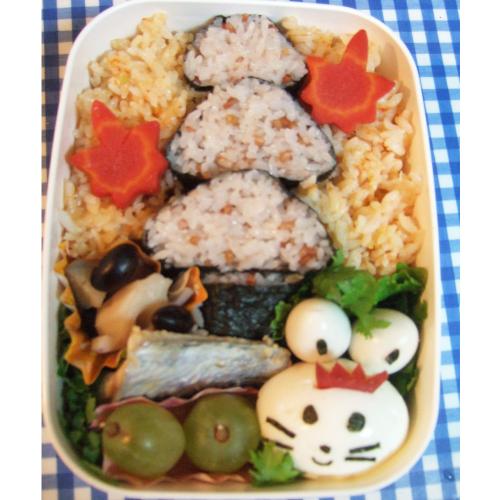 金時人参のピラフと赤米ご飯で秋の宝福寺をイメージしたお弁当を作りました。