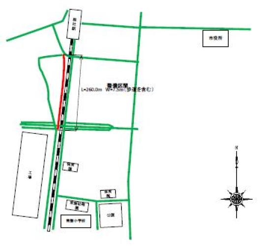 〈路線名〉真壁支線3156号道 〈起終点〉総社市溝口から真壁地内 〈整備概要〉L=260m W=7.5m(歩道を含む)車道幅員5.0mの道路であるため、車両のすれ違いに注意のうえ通行して下さい。 〈事業年度〉平成28年度から平成31年度(令和元年度) 〈供用開始日〉令和2年4月1日 〈事業費〉65百万円 〈事業効果〉歩行者の通行の安全確保