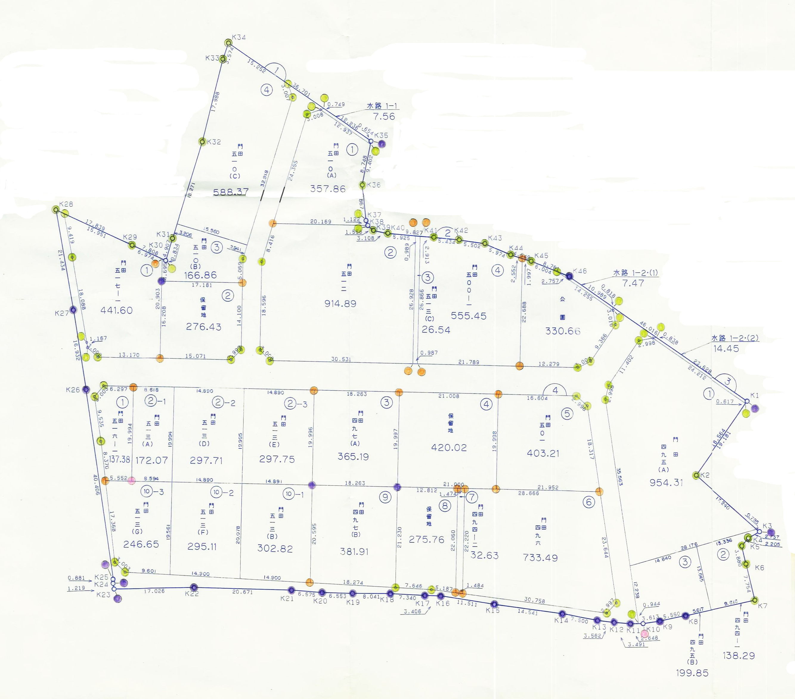 総社市門田第一・第二土地区画整理事業(座標・基準点・換地図)