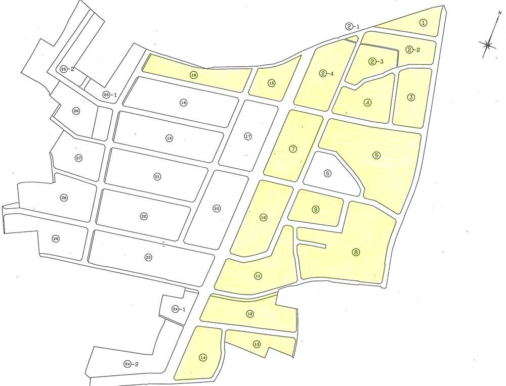 - 資料は、あくまで換地処分時点のものです。分合筆、測量技術の差、自然現象等による土地の変形等により、現況と必ずしも一致するものではありません。あくまで参考資料としてのみ使用してください。