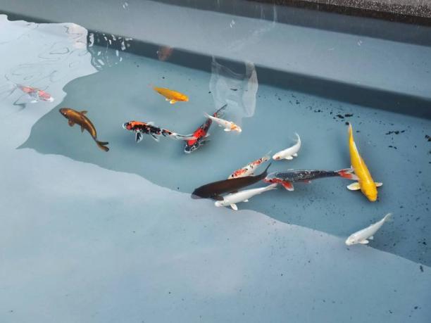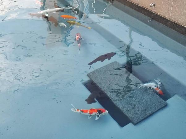 市庁舎の敷地にある池の移設工事にあわせて、鯉たちが新しい池にお引っ越ししました!赤や白、金色など、色とりどりの鯉たちが気持ちよさそうに泳いでいます。庁舎にお越しの際は、ぜひ足をとめてご覧ください。季節や時間帯によって、泳ぎ方や姿の見え方も変わり、見ているだけで心がなごみます。また、鯉のえさを市庁舎1階の総合窓口で無料でお渡ししています。お子さんからご年配の方まで、どうぞお気軽にお声かけください。皆さんに親しまれる池となるよう、大切に見守ってまいります。